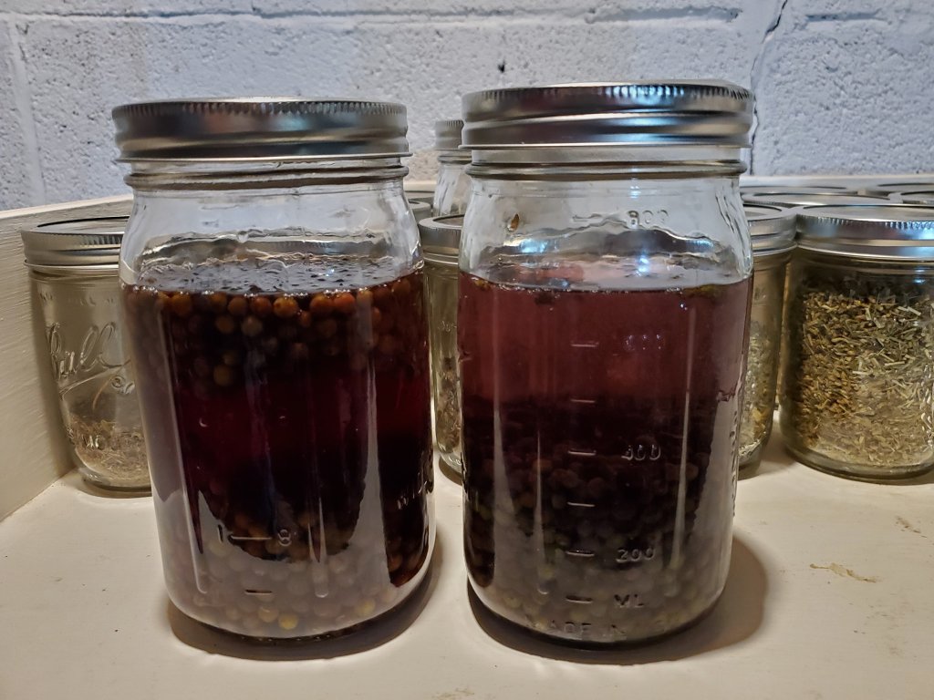 Today, on the eve of the celebration of Lammas/Lughnasadh, I spent the day in the garden and in the kitchen. I harvested herbs, flowers and fruit which where then prepared for drying or infused in oil/alcohol on their way to becoming ingredients for homemade soap or tinctures. I also brewed a batch of blackberry elderberry mead which is now happily bubbling on my kitchen counter (a sign that formation is, indeed, taking place).